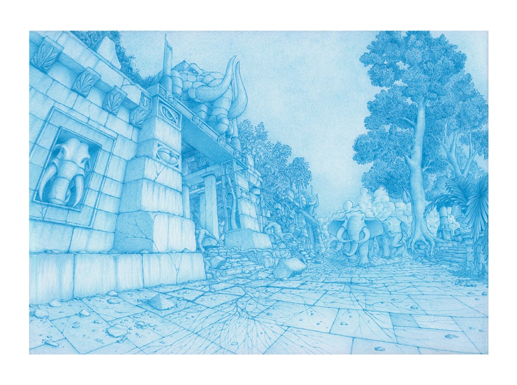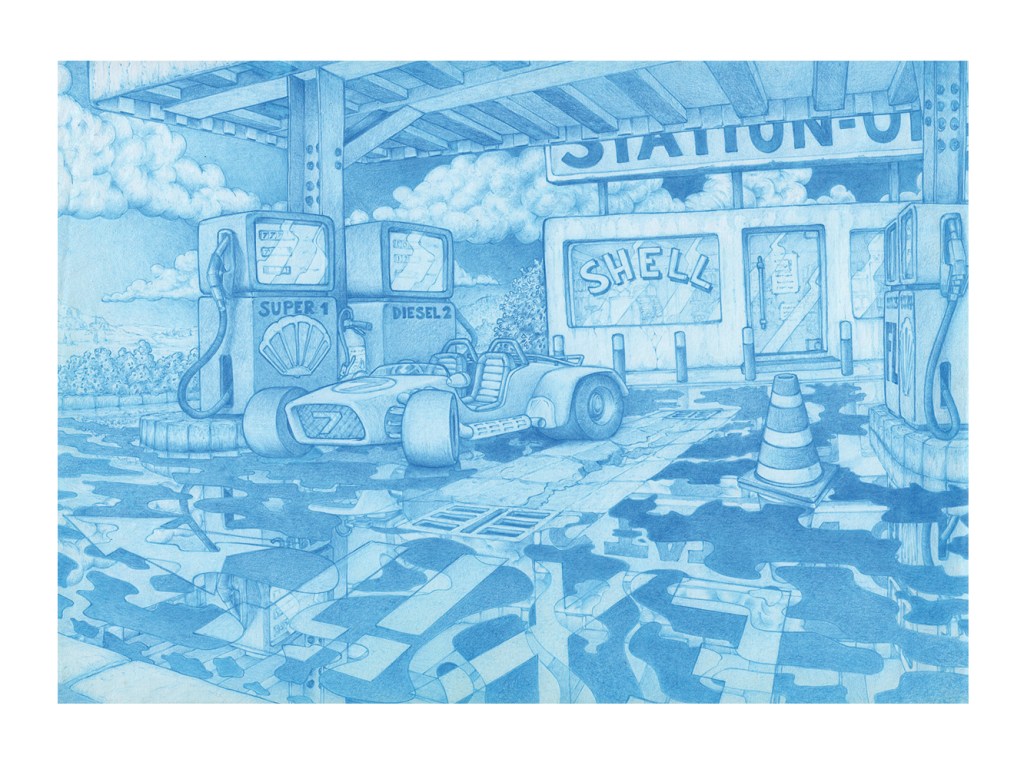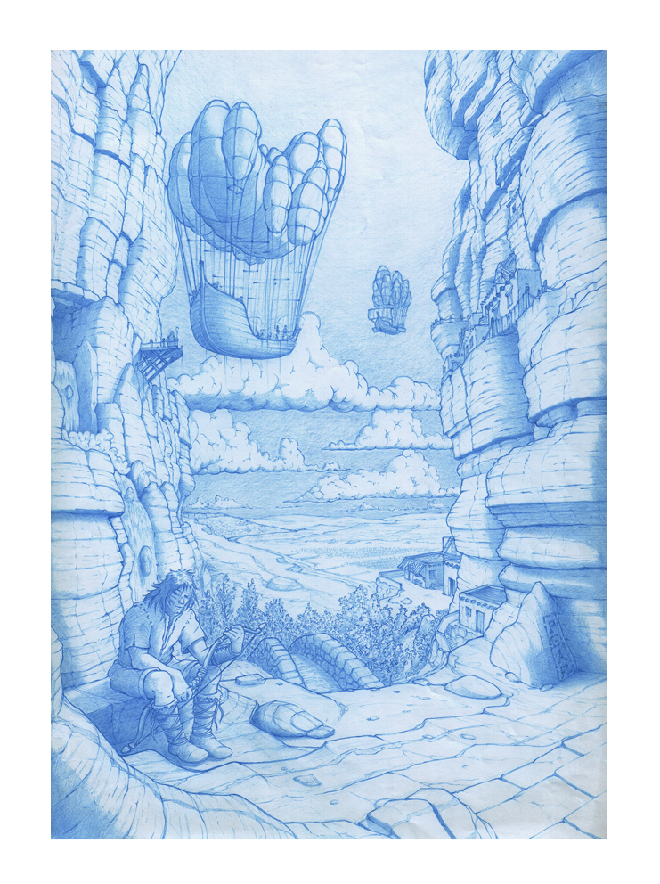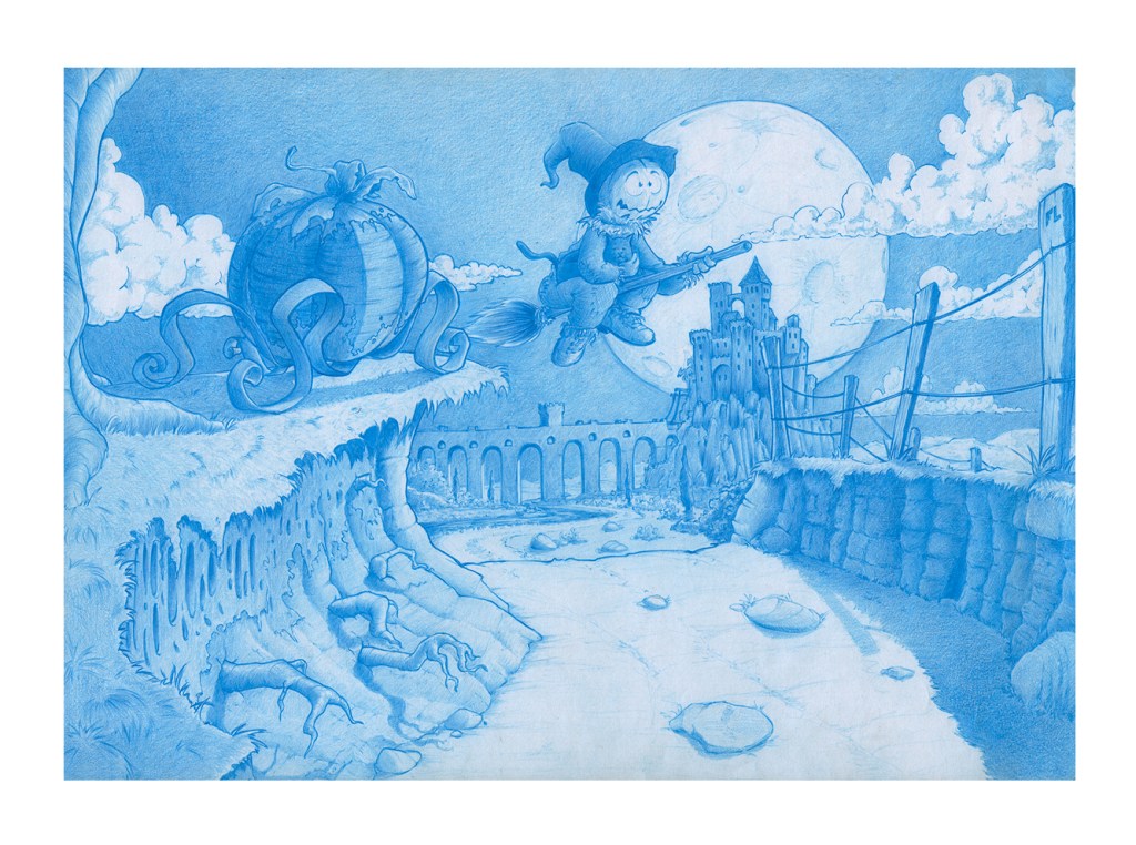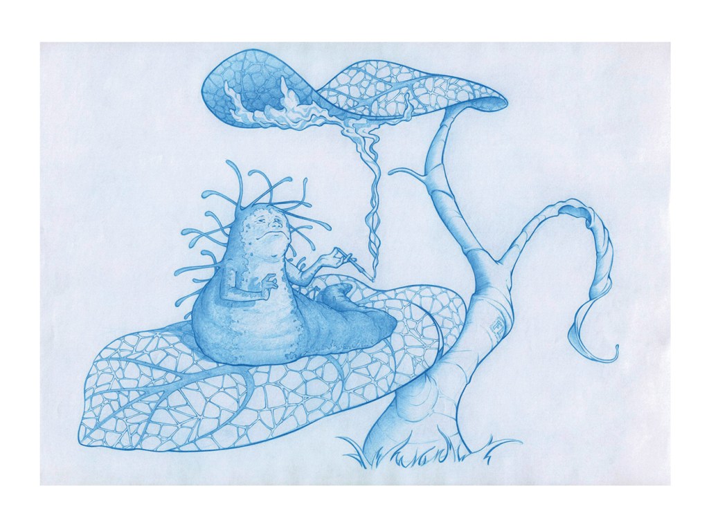 Monochrome réalisés au critérium 2 mm et mine Lumochrom Blue Staedtler